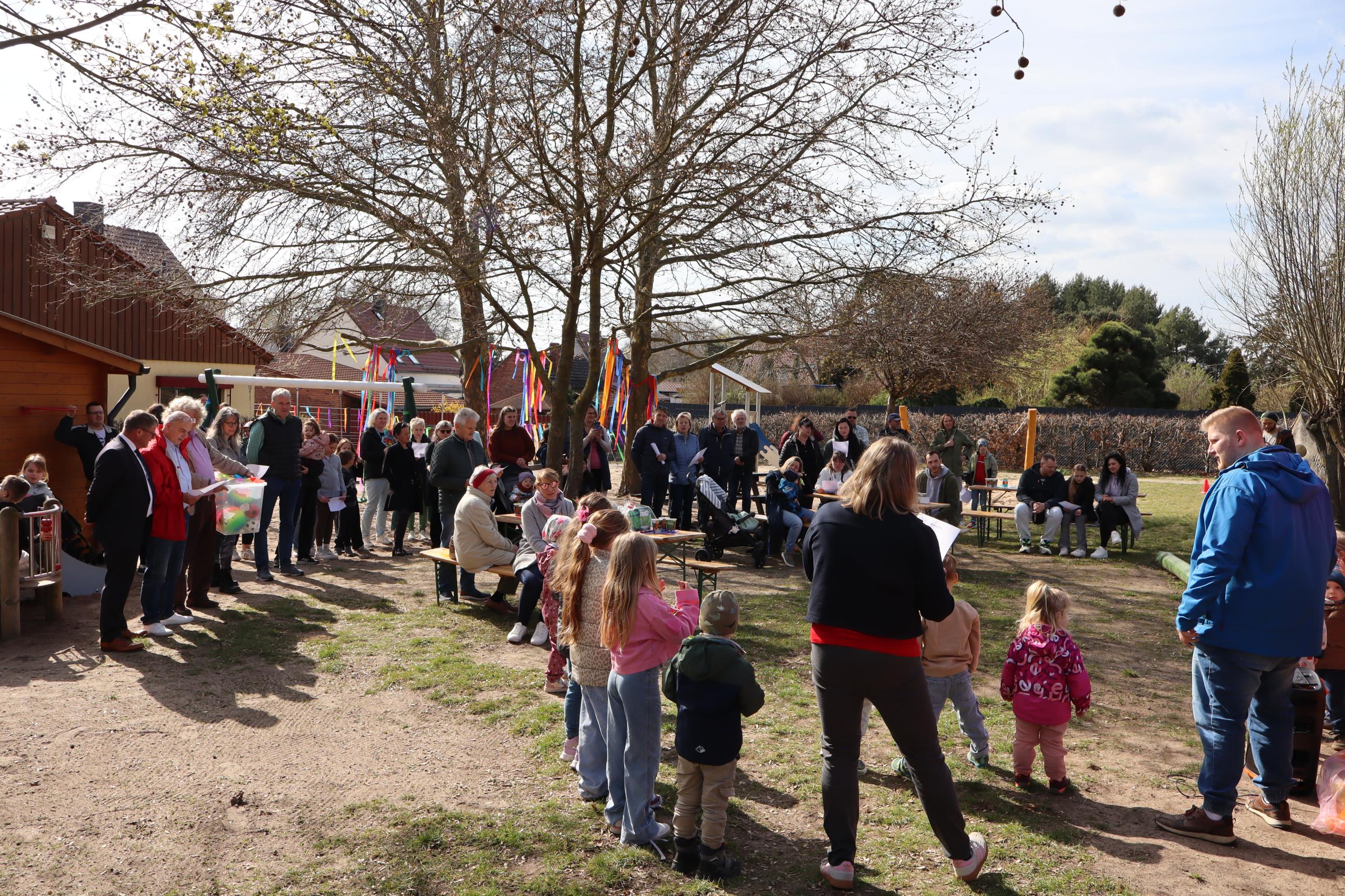 Im Rahmen der offiziellen Eröffnung würdigten die stellvertretende Leiterin Sandra Meyer sowie Oberbürgermeister Bert Knoblauch gemeinsam mit ehemaligen Ortsbürgermeistern und Ortschaftsräten die Entwicklung der vergangenen 25 Jahre. In ihren Grußworten blickten sie auf die Geschichte der Einrichtung zurück, dankten den bisherigen Leiterinnen sowie dem pädagogischen Team für ihr langjähriges Engagement und wünschten der Kita auch für die Zukunft eine erfolgreiche Weiterentwicklung.