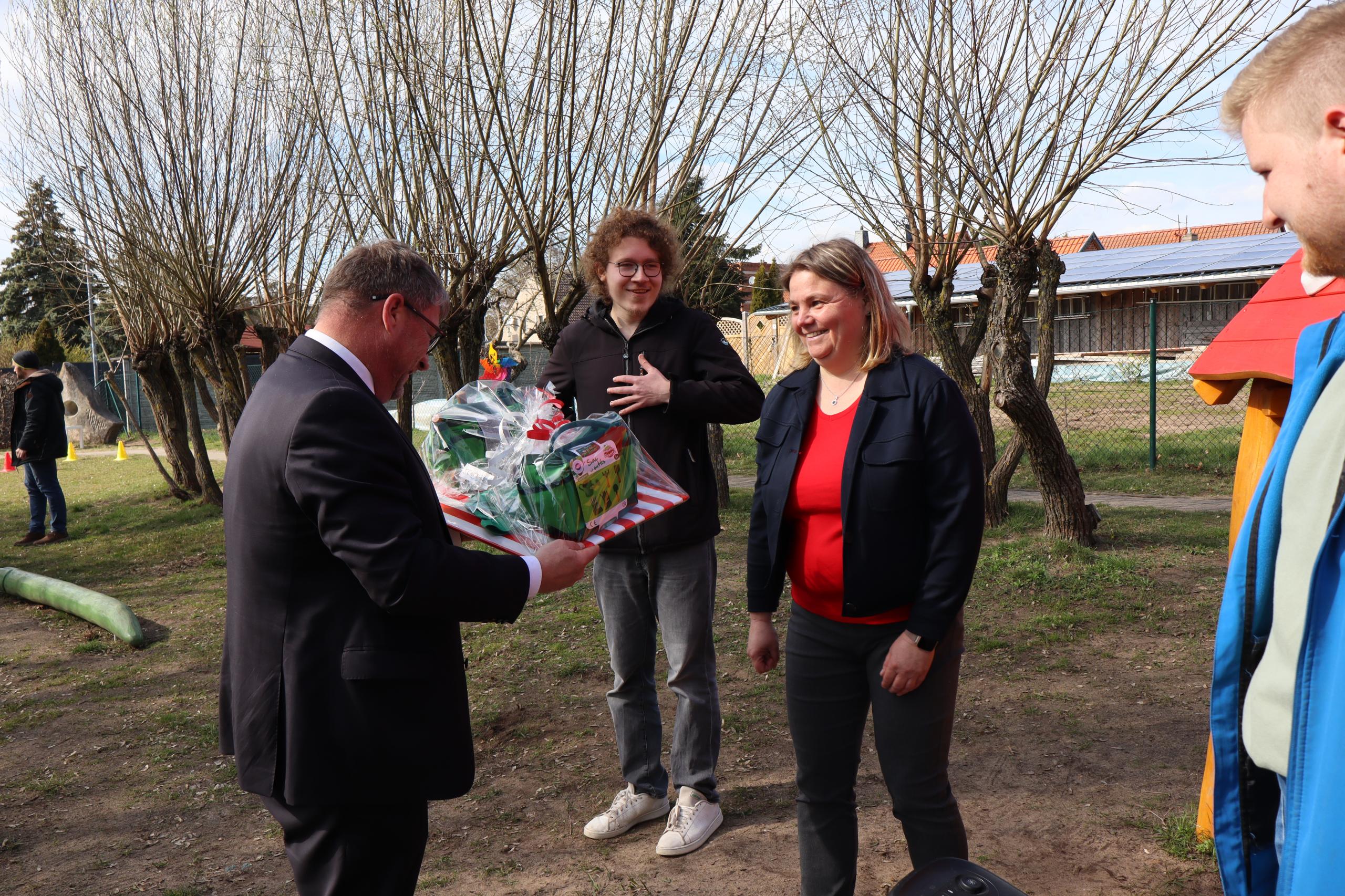 Andreas Baack, Öffentlichkeitsmanager Bereich Schönebeck, bedankte sich bei den ehemaligen und aktuellen Mitarbeiterinnen und Mitarbeitern für ihr Engagement und überbrachte einen Spendenscheck der Salzlandsparkasse. Auch die Mitglieder des Ortschaftsrates überbrachten kleine Präsente für die Kinder.