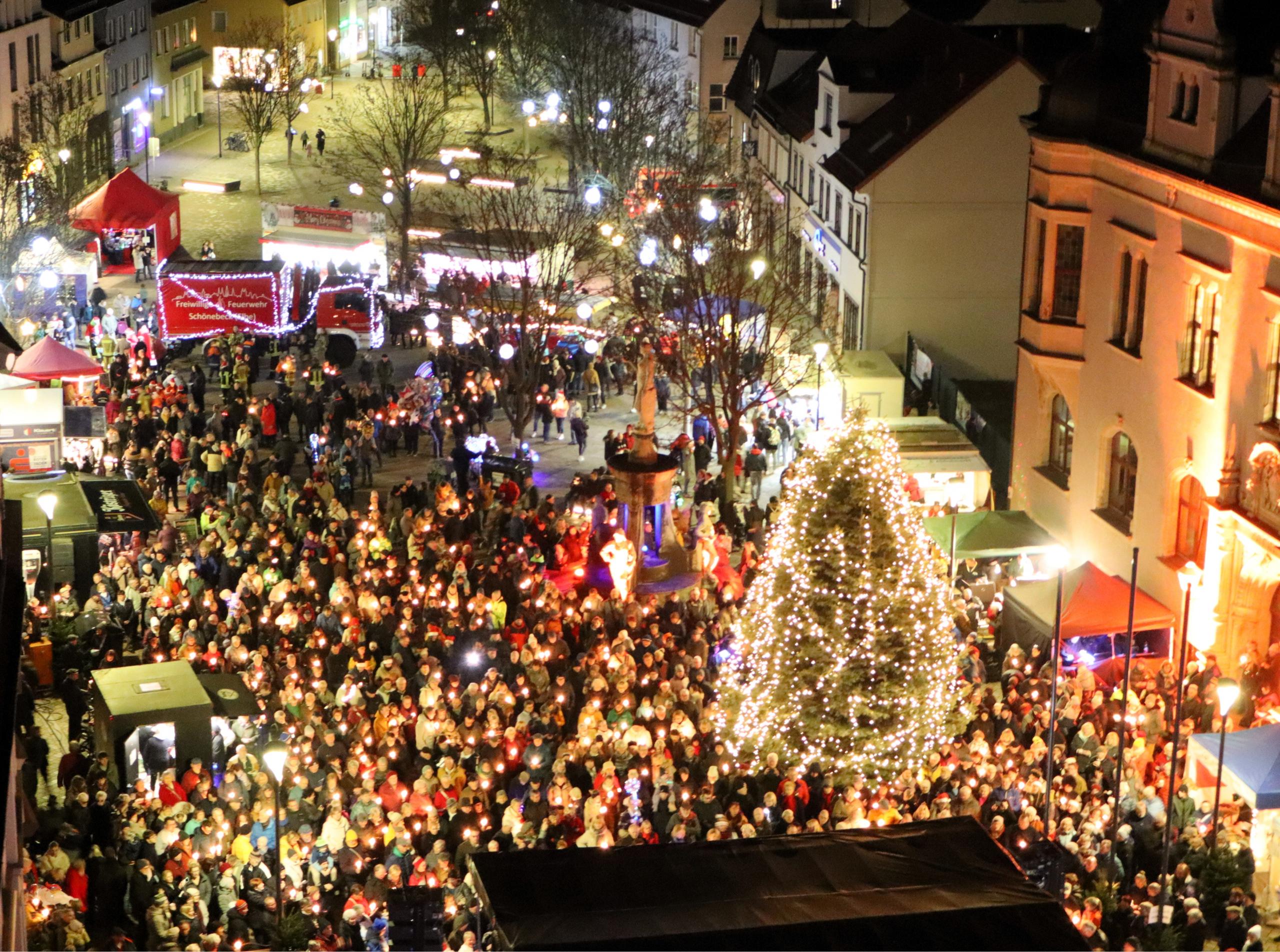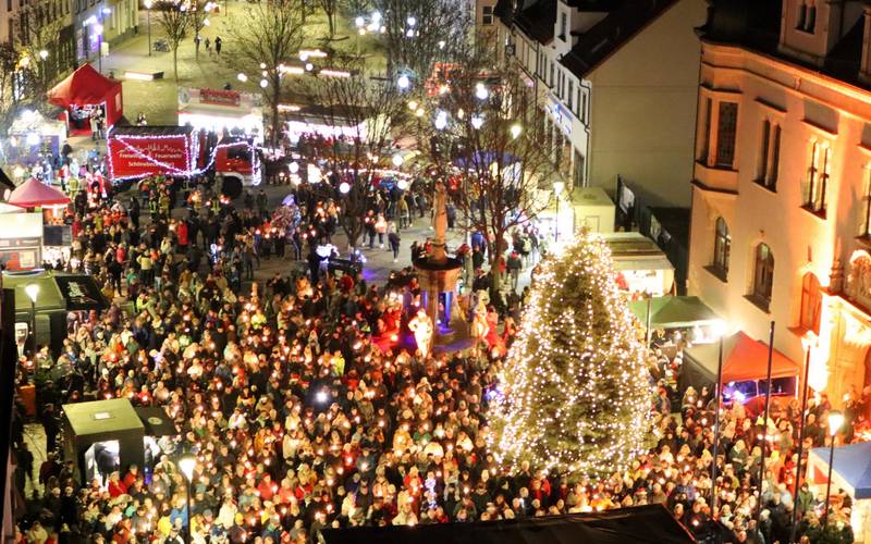 Das Chor-Bandprojekt des CJD stimmte am Samstag auf die zwei Markttage ein. Nach abwechslungsreichem Weihnachtsprogramm folgte der Lichterumzug vom Busbahnhof auf den Marktplatz, bevor gemeinsam mit Moderator Maik "Scholle" Scholkowsky das Weihnachtssingen startete. Nach einer Gedenkminute für die Opfer des Anschlags auf dem Magdeburger Weihnachtsmarkt vom 20. Dezember des vergangenen Jahres stimmten die vielen Bürgerinnen, Bürger und Besucher gemeinsam zu "O du fröhliche", "Morgen Kinder wird's was geben" oder "Schneeflöckchen, Weißröckchen" ein. Anschließend ging es unter anderem mit Silke & Dirk Spielberg auf der Bühne weiter. Am Sonntag eröffnete der Schulchor der Grundschule "Käthe Kollwitz" den Nachmittag. Die Feuershow bildete den spektakulären Abschluss der Veranstaltung.
