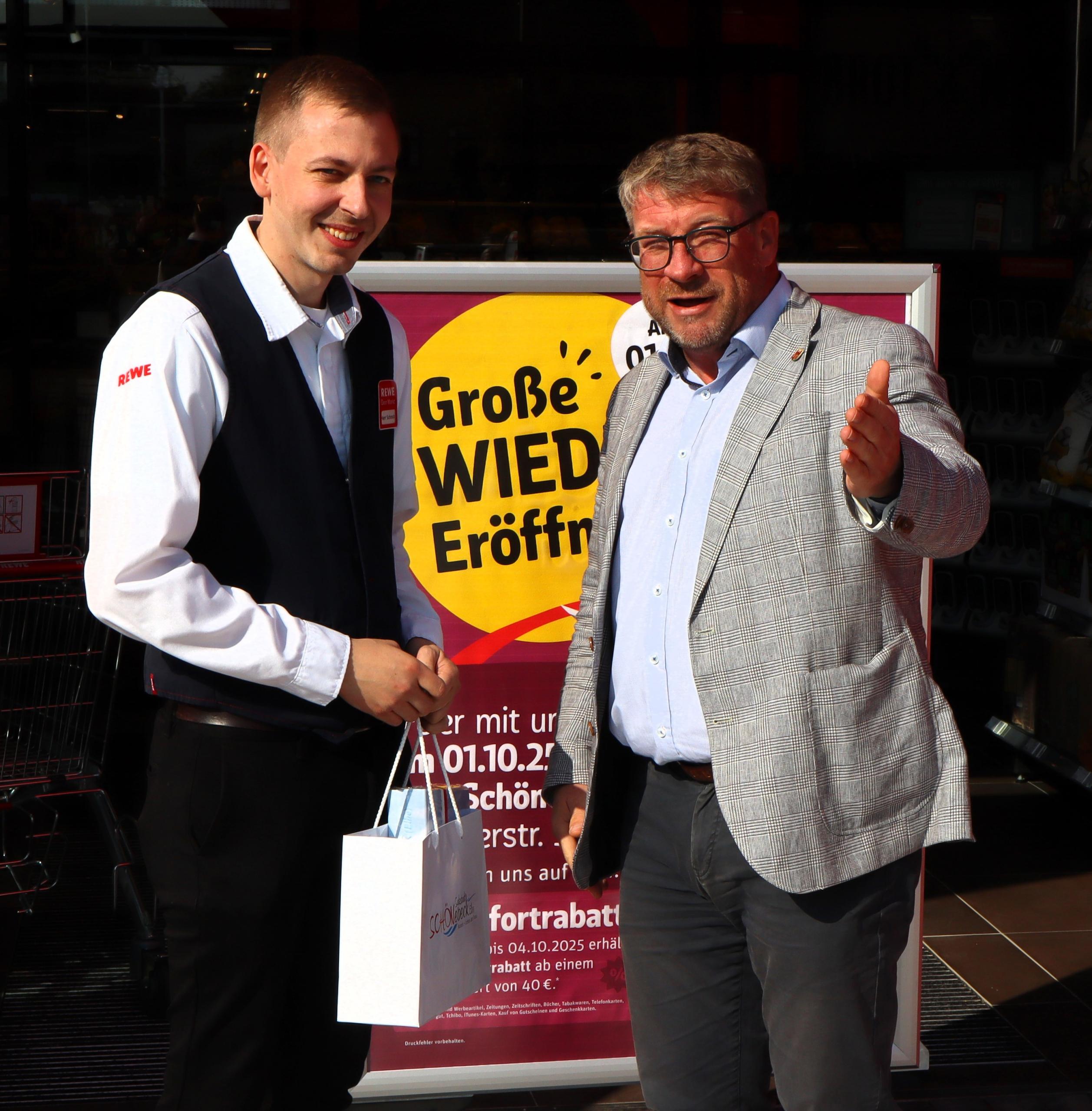 Mit einem neuen Leiter ist am 1. Oktober der Rewe-Markt Schillerstraße wiedereröffnet worden. Benjamin Schreck übernimmt von Simone Nieß, die in den Ruhestand gegangen ist. Nach fast einem halben Jahr Schließung aufgrund von Umbaumaßnahmen zur Modernisierung wurden die Kunden im nun 400 Quadratmeter mehr fassenden Einkaufsmarkt willkommen geheißen. „Am alten Standort erscheint der Markt in neuem Licht“, gratulierte auch Oberbürgermeister Bert Knoblauch.