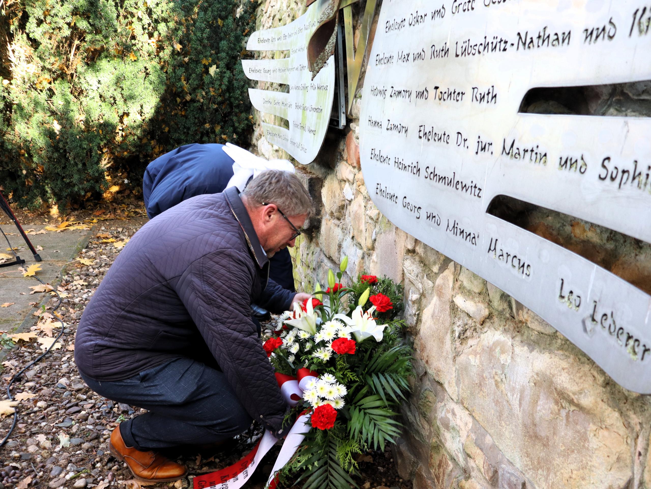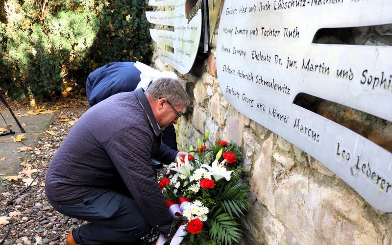 "Wir stehen heute hier – 87 Jahre nach der Reichspogromnacht – an einem Ort des Erinnerns. Und wir stehen hier gemeinsam: Ältere, Jüngere, Schülerinnen und Schüler, Lehrkräfte, Vertreterinnen und Vertreter unserer Stadt. Es ist gut, dass wir das tun. Denn Erinnern ist kein Automatismus. Erinnern braucht Menschen – Menschen, die sich die Zeit nehmen, die hinhören, die verstehen wollen", sagte Oberbürgermeister Bert Knoblauch während der Gedenkveranstaltung am Holocaust-Mahnmal, Nicolaistraße.