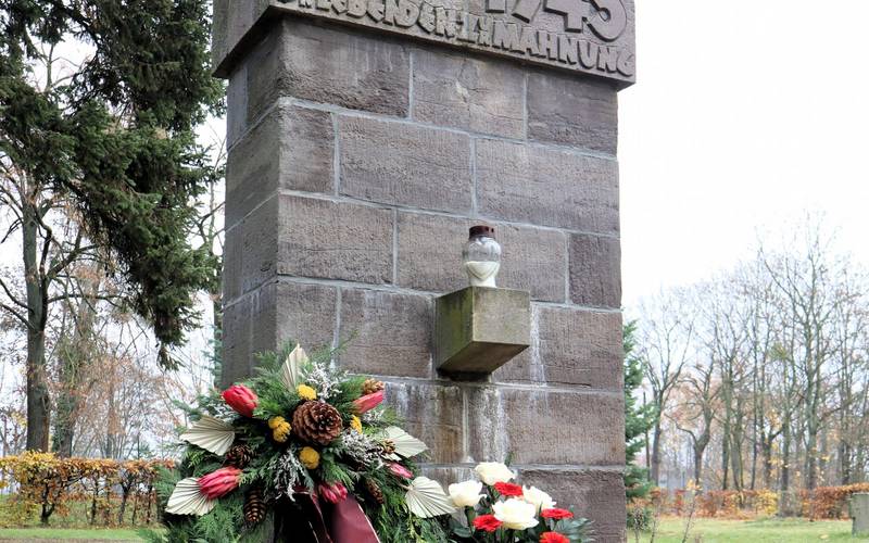 Anlässlich des Volkstrauertages legte Oberbürgermeister Bert Knoblauch am Mahnmal auf dem Ostfriedhof in Schönebeck (Elbe) einen Kranz nieder. Gemeinsam mit Mitgliedern des Schönebecker Stadtrates, Herbert Bohlmann vom Kreisverband des Sozialverbandes Schönebeck sowie Dirk Wege von der Reservistenkameradschaft "Schillsche Jäger" der Bundeswehr gedachte er den Opfern von Krieg und Gewalt.