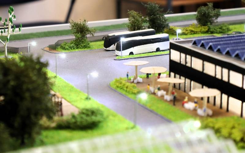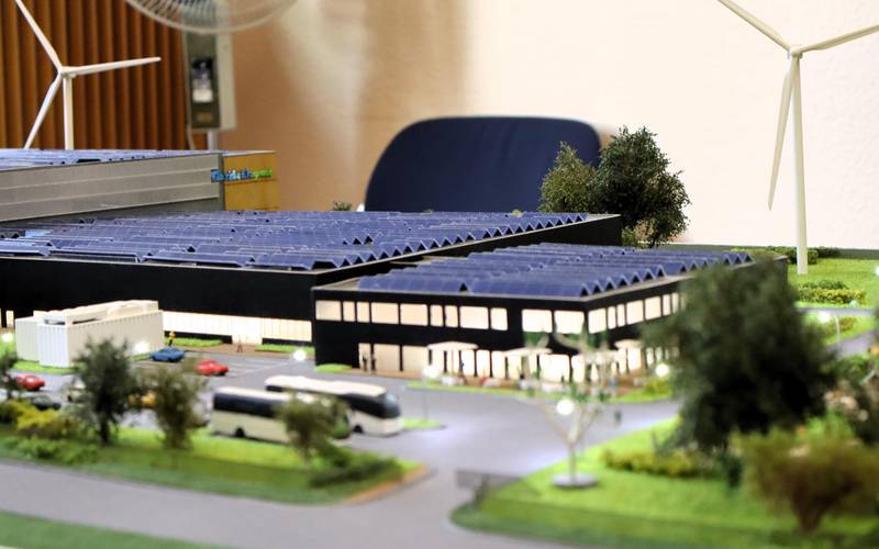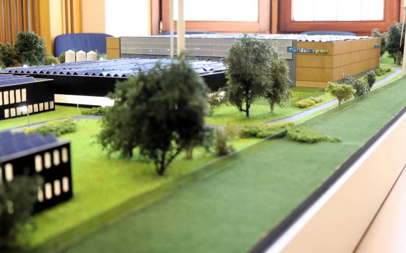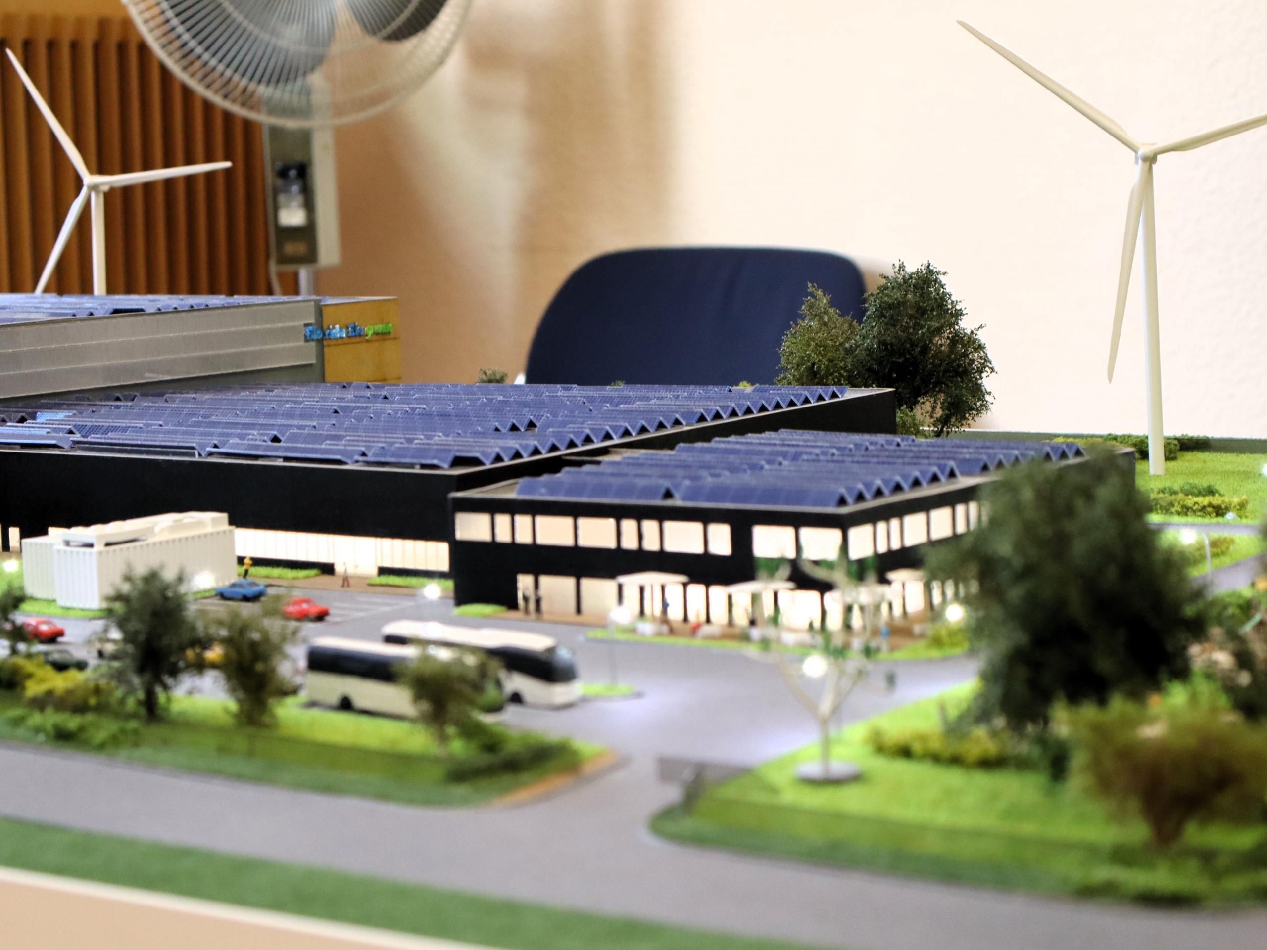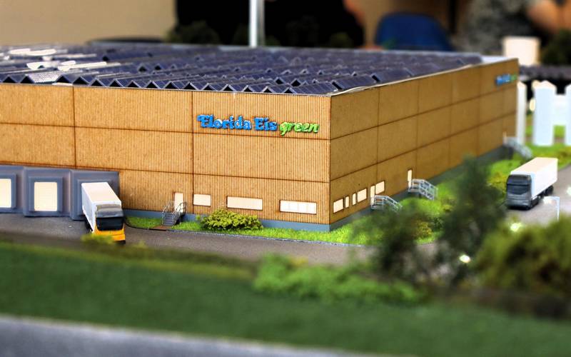 Zwischen den Standorten Berlin und Schönebeck setzt Höhn – wie bei der kompletten Baumaßnahme und Produktion – auf Autarkie. Die LKW sollen möglichst mit Wasserstoff unterwegs sein. Dieser wird auf dem Gelände in Schönebeck produziert, unter anderem mit Wind- und Solarstrom, von dem die technischen Einrichtungen auf dem Gelände am Tag bis zu 2 Megawatt produzieren. „Wir wollen zu mindestens 98 Prozent autark wirtschaften.“ Dazu wird für die Hallen in Holzbauweise auch Bambus in Erwägung gezogen, wenngleich dieser Werkstoff „aktuell sehr teuer ist“. Bis es so weit ist, gibt es das Firmengelände von Florida-Eis in Schönebeck zum Anfassen nur in Kleinformat.