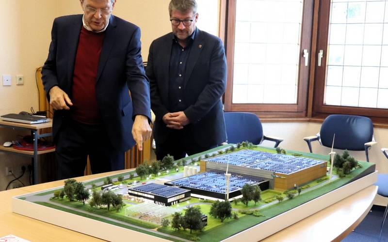 Zum Pressetermin hatte Olaf Höhn ein 3D-Modell im Gepäck. „Da sieht man schon mal, dass viel mehr geplant ist als nur die Produktion hier zu errichten.“ Neben der geplanten 4.000 Quadratmeter großen Produktionshalle soll eine große Logistik-Abteilung entstehen, hinzu kommen ein Bürogebäude mit integriertem Eiscafé und Werksverkauf sowie ein großer Spielplatz für Kinder. „Wir wollen, dass unsere Gäste hier gern Zeit verbringen. Wir wollen auch ein Ausflugsziel sein“, betonte Höhn.