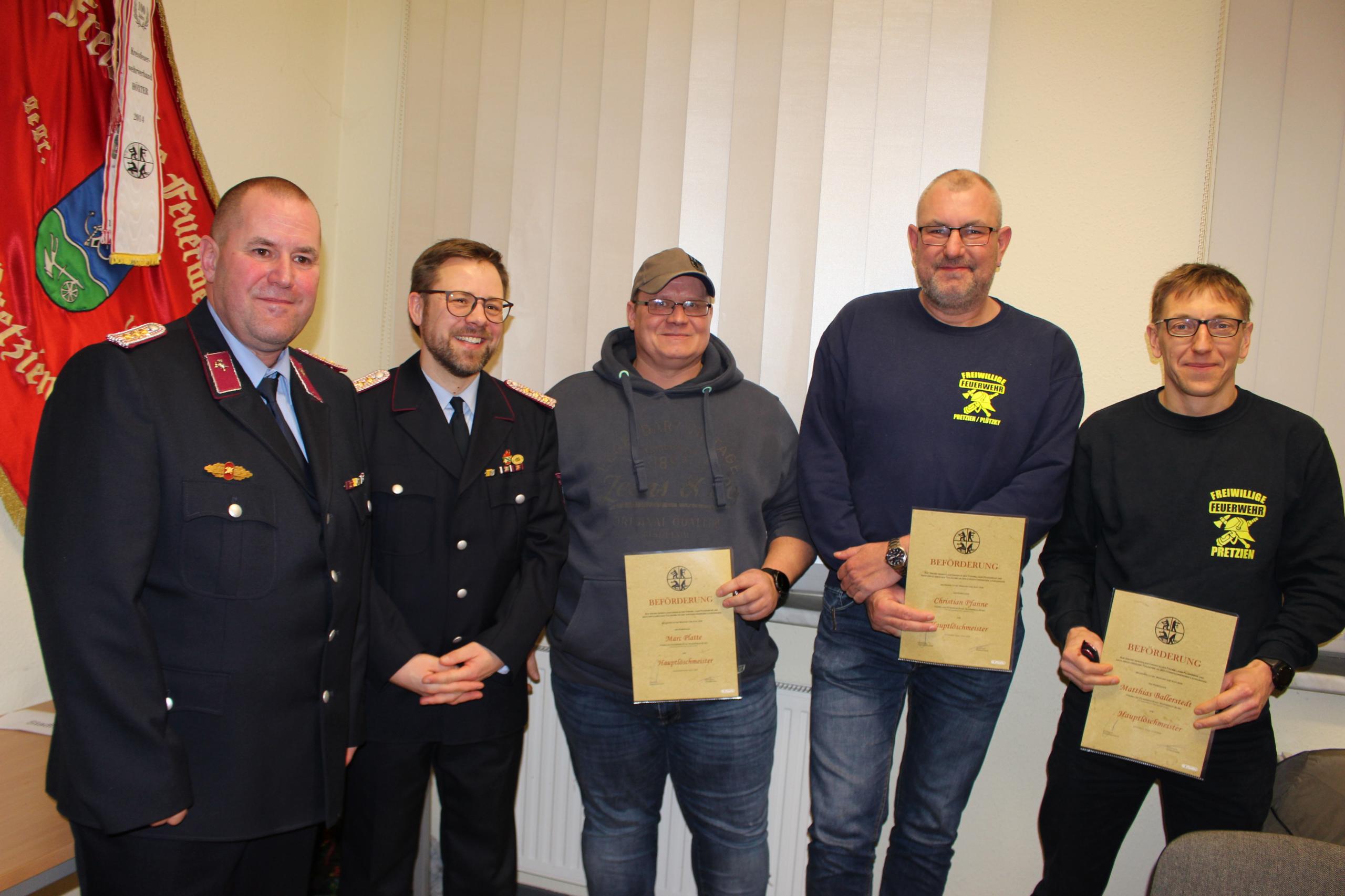 Schönebecks Baudezernent Guido Schmidt dankte als Vertreter des Oberbürgermeisters „für den Einsatz, auch am gesellschaftlichen Leben. Schön, dass die Jugend so aktiv ist. Ich wünsche weiterhin gefahrlose Einsätze.“ Worte des Dankes ging auch an die Mitglieder des unermüdlichen Feuerwehrfördervereins Pretzien, die mit ihrer finanziellen Unterstützung die Ausstattung der Wehr hilfreich ergänzen. Stadtwehrleiter Daniel Schürmann würdigte die Einsätze der Pretziener Wehr und lobte die Wehr für ihre zuverlässige und vor allem selbstständige Arbeit. Ortschaftsbürgermeisterin Silvia-Christina Franke dankte insbesondere den Kameraden für ihren Einsatz in Pretzien.