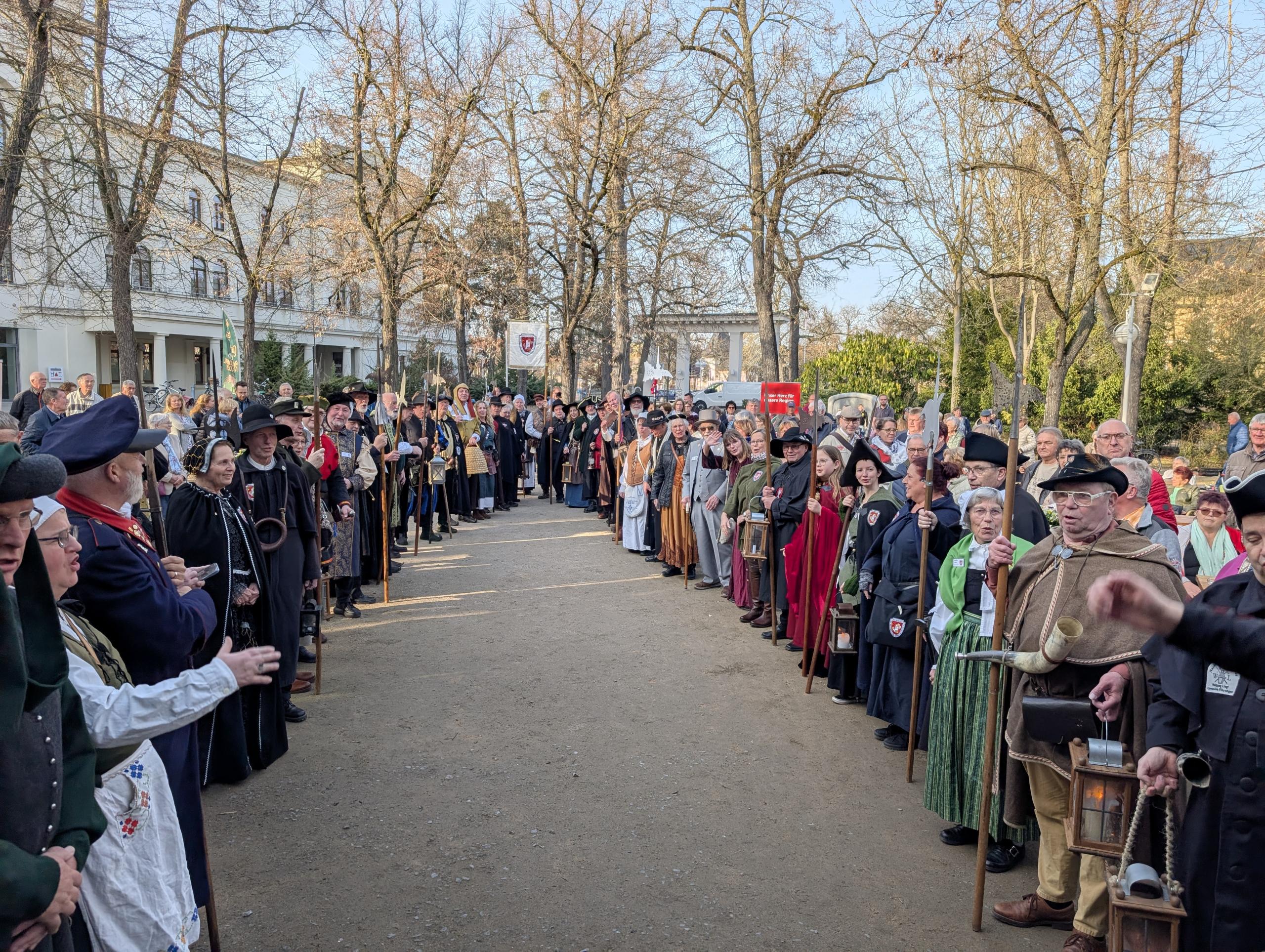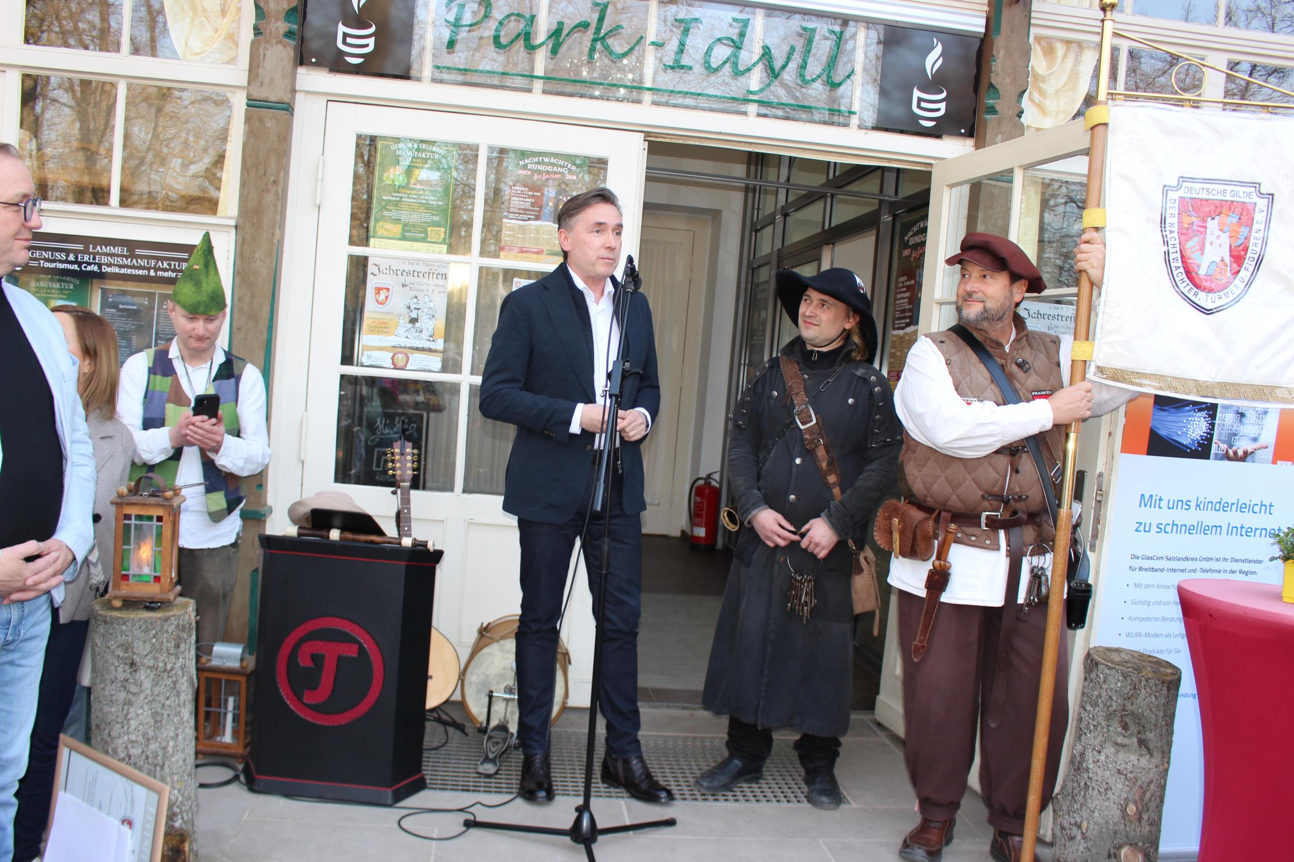 Dass das Treffen weit mehr als eine gewöhnliche Vereinsversammlung war, zeigte auch die Liste der Ehrengäste. Sachsen-Anhalts Staatssekretär Thomas Wünsch begrüßte die Darsteller im Namen der Landesregierung, Landrat Markus Bauer betonte die Bedeutung des Treffens für den Salzlandkreis und überreichte eine entsprechende Urkunde. Oberbürgermeister Bert Knoblauch würdigte die Rolle der historischen Figuren für die Stadt. „Dass dieses bundesweite – ja internationale – Treffen hier bei uns stattfindet, erfüllt uns mit Stolz“, sagte Knoblauch. "Schönebeck ist eine Stadt mit Geschichte. Und Geschichte braucht Erzählerinnen und Erzähler. Sie braucht Menschen, die sie bewahren, aber auch mit einem Augenzwinkern weitergeben. Sie braucht Persönlichkeiten wie euch", so das Stadtoberhaupt. Mit persönlichen Worten richtete er sich direkt an Schönebecks Nachtwächter Jeff Lammel, der in diesem Jahr sein zwanzigstes Jubiläum feiert. "Lieber Jeff, seit zwei Jahrzehnten gehst du durch unsere Straßen, erzählst Geschichten, bringst Menschen zum Schmunzeln, zum Staunen und manchmal auch zum Nachdenken. Du bist nicht nur nachts unterwegs - du bist längst zu einem Botschafter unserer Stadt geworden. Und zwar weit über die Stadtgrenzen hinaus. Und dafür gilt unser Dank", so Knoblauch.