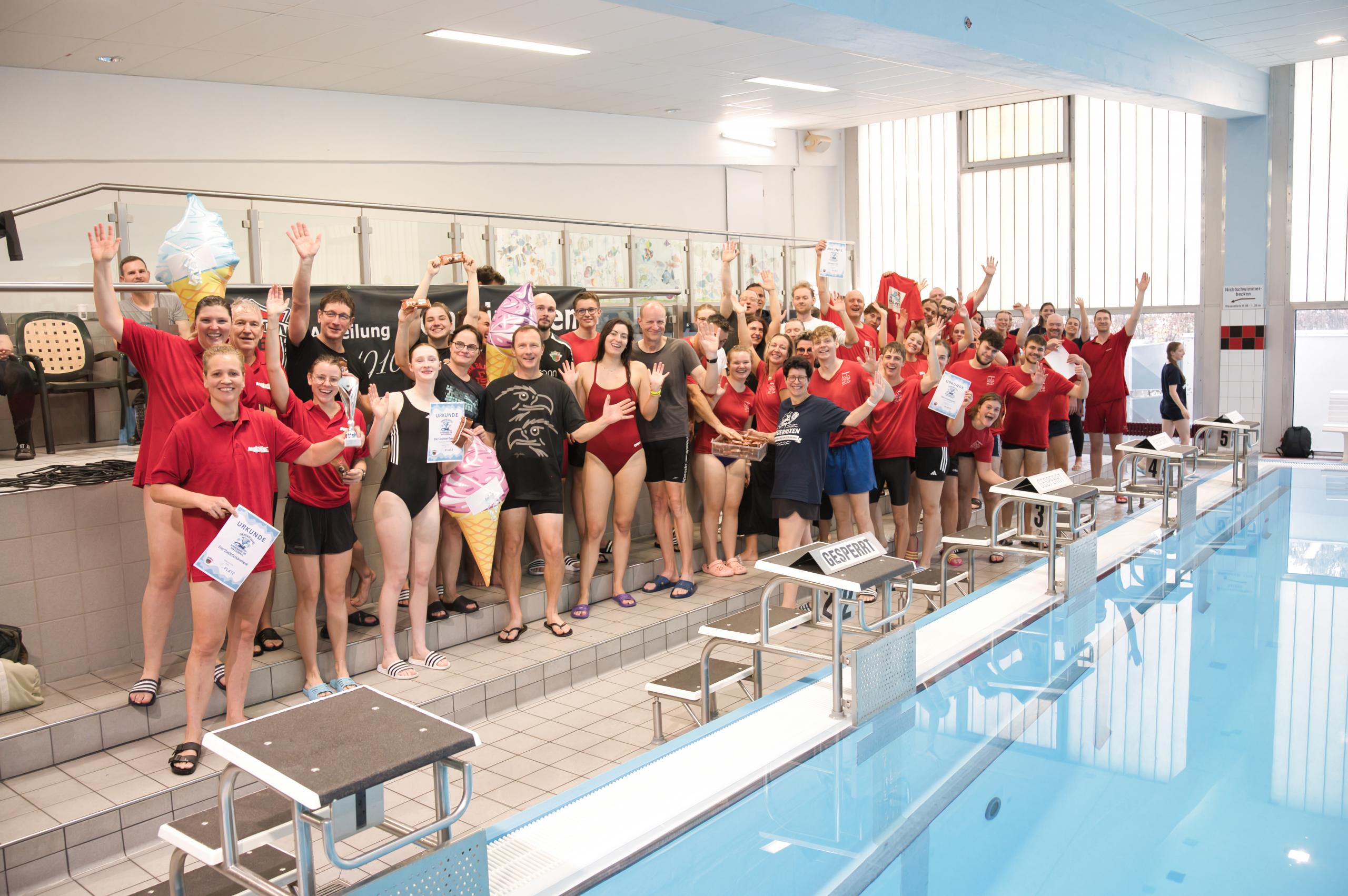 Unter dem Motto "Schwimmen um den Eispokal" fand am Wochenende die zweite Schwimm-Firmenstaffel von UNION 1861 Schönebeck e. V. statt. Zehn Unternehmen schickten ihre Teams ins Rennen. Auch die Stadt Schönebeck (Elbe) beteiligte sich am fröhlichen Wettbewerb in der Volksschwimmhalle. Unterstützt wurde die Stadt von Mitarbeiterinnen und Mitarbeitern der Verwaltung und Bürgern der Elbestadt. Und diese Unterstützung wurde mit dem ersten Platz nach insgesamt sieben Wettkämpfen belohnt. Bei dieser Veranstaltung ging es um viel mehr als nur sportliche Höchstleistungen: Es ging um Spaß, Teamgeist und - natürlich - den Eispokal.