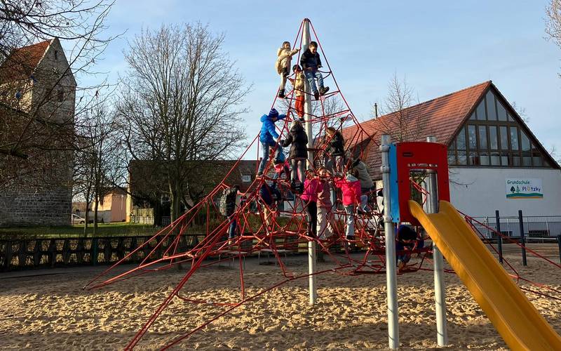 Vor wenigen Tagen konnten die Mädchen und Jungen der Grundschule Plötzky endlich ihren neu gestalteten Spielplatz nach Herzenslust erkunden. Die Freude darüber konnte auch das nasskalte Wetter am Tag der Freigabe durch Schulleiterin Birka Heinsdorf nicht trüben. So nahmen die Kinder zuerst die große Kletterspinne mit integrierter Rutsche in Beschlag, welche seither oft und gern genutzt wird. Insbesondere die Mädchen sind happy, endlich wieder an ihren geliebten Reckstangen turnen zu können. Auch die Schaukeln sind stets besetzt und es ist Geduld gefragt, endlich auch einmal abheben zu können. Vielen Dank an die Mitarbeiter des Bauhofes und der ausführenden Firma, welche während der Hofpausen unter den neugierigen und ungeduldigen Blicken der Kinder ihre Arbeit verrichteten.