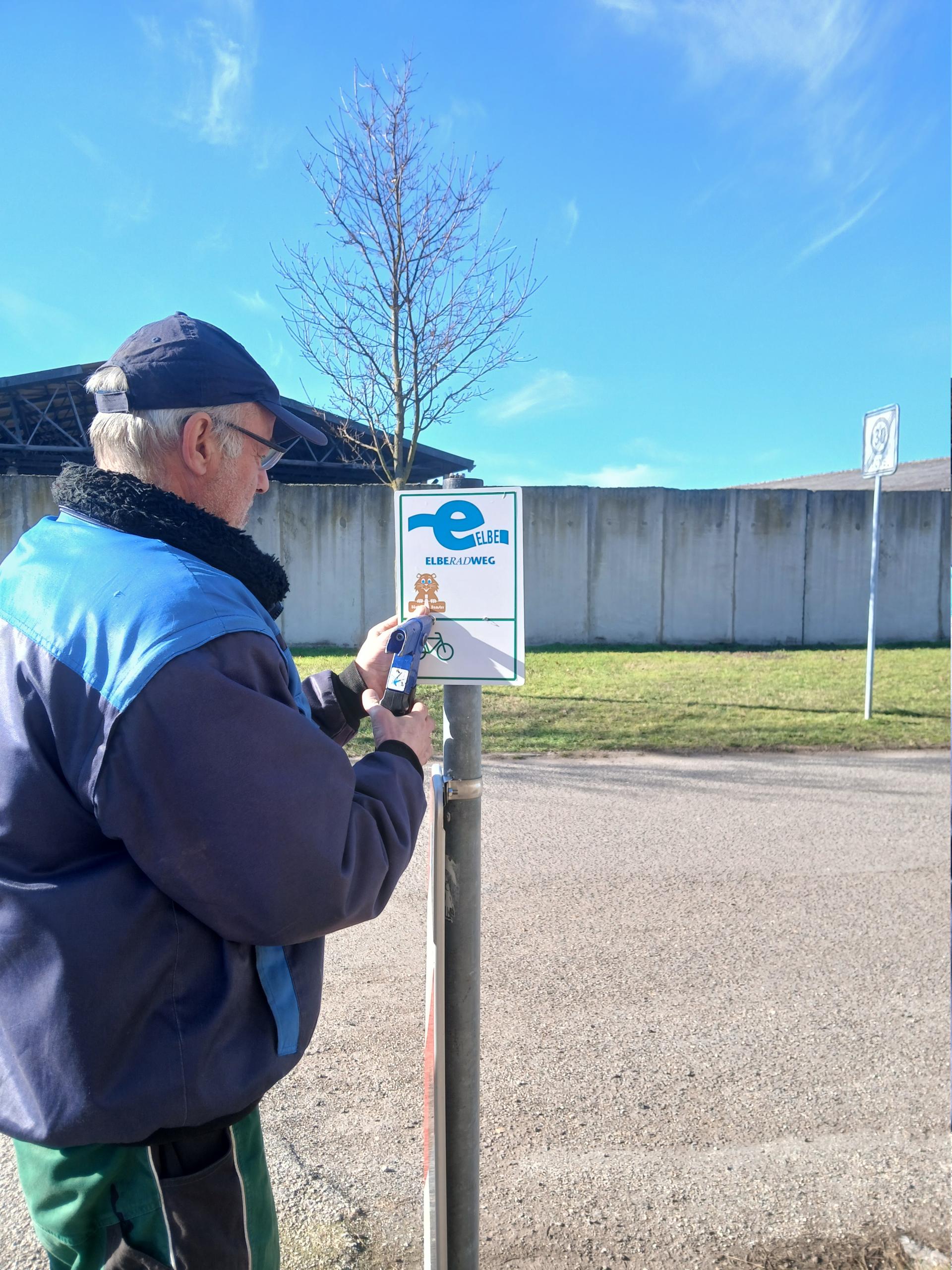 Im Auftrag des Landes Sachsen-Anhalt kontrollierte Matthias Beyersdorfer die Beschilderung der Wegführung im Schönebecker Abschnitt des Elberadweges. Der Inhaber des Planungsbüros für Radverkehr und Wandern nahm dabei eine routinemäßige Überprüfung der Schilder vor, passte einzelne Wegweiser an und besserte beschädigte oder verblasste Beschilderungen aus.