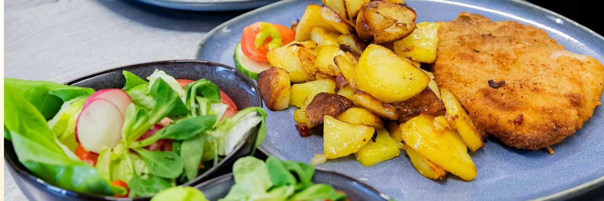 Hausgemachte Frische: Das Team legt Wert auf Eigenproduktion. Dies umfasst das Selbstbacken von Blechkuchen, Obstböden und Quarktorten sowie die frische Zubereitung vieler Gerichte von Grund auf – darunter Currysoße, Dressings, Soljanka, Pastagerichte und Pizzen.