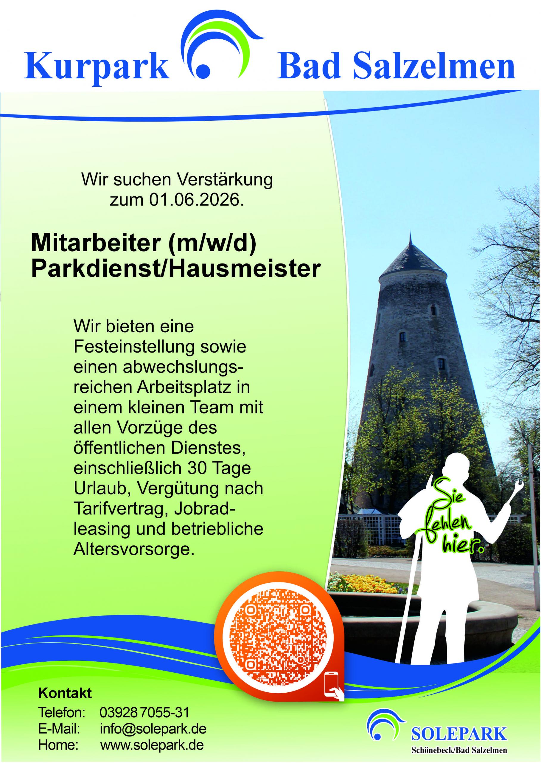 Stellenausschreibung Mitarbeiter (m/w/d) Parkdienst/Hausmeister